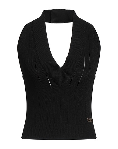 top, knitted, lightweight knit, solid color, brand logo, halterneck, sleeveless, dry clean, do not bleach, do not tumble dry, do not iron