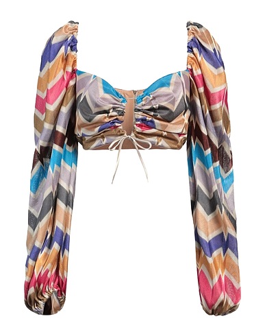 crop top, knitted, lightweight knit, multicolor, no appliqués, boat neckline, long sleeves, fully lined, zipper fastening, machine wash or dry clean, do not bleach, do not tumble dry
