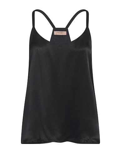 camisole, satin, solid color, brand logo, deep neckline, sleeveless, fully lined, dry clean, do not bleach, do not tumble dry