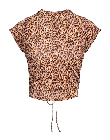 top, jersey, leopard-print, open back, crewneck, short sleeves, stretch, machine wash or dry clean, do not bleach, do not tumble dry
