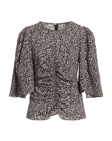 top, crepe, two-tone, gathered, crewneck, 3/4 length sleeves, zipper fastening, concealed button fastenings, stretch, dry clean, do not bleach, do not tumble dry