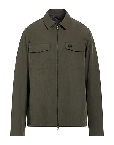 harrington jacket, shell, solid color, embroidered logo, long sleeves, unlined, zipper fastening, two chest pockets, machine wash or dry clean, do not bleach, do not tumble dry, this brand runs small