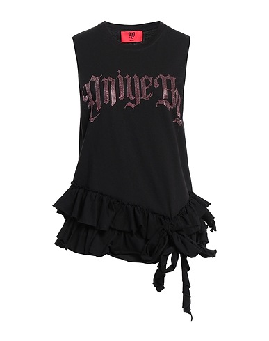 ruched top, jersey, solid color with appliqués, ruffles, fringes, crystals, crewneck, sleeveless, hand wash, do not bleach, do not tumble dry