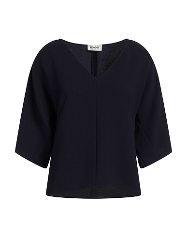 top, crepe, solid color, no appliqués, v-neck, short sleeves, dry clean, do not bleach, do not tumble dry
