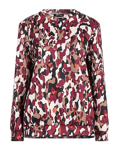 synthetic jersey, camouflage-print, no appliqués, crewneck, long sleeves, stretch, hand wash or dry clean, do not bleach, do not tumble dry
