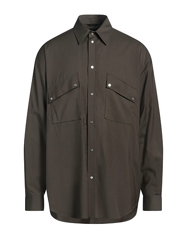 safari shirt, wool, solid color, no appliqués, classic collar, long sleeves, snap-fastening cuffs, two chest pockets, dry clean, do not bleach, do not tumble dry