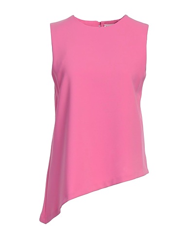 top, crepe, solid color, no appliqués, crewneck, sleeveless, 1 button, machine wash or dry clean, do not bleach, do not tumble dry