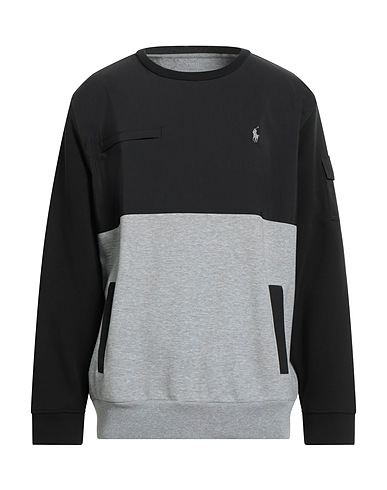 french terry, shell, two-tone, embroidered logo, crewneck, long sleeves, multipockets, machine wash, do not bleach, tumble dry, this brand runs large