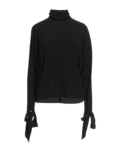 top, crepe, solid color, no appliqués, turtleneck, long sleeves, button fastenings, hand wash or dry clean, do not bleach, do not tumble dry