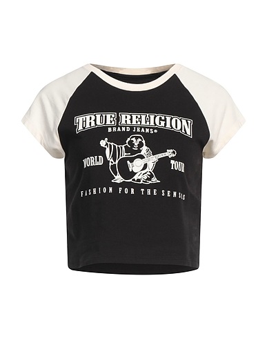 crop tee, jersey, two-tone, brand logo, print, crewneck, short sleeves, stretch, machine wash, do not bleach, tumble dry, do not iron