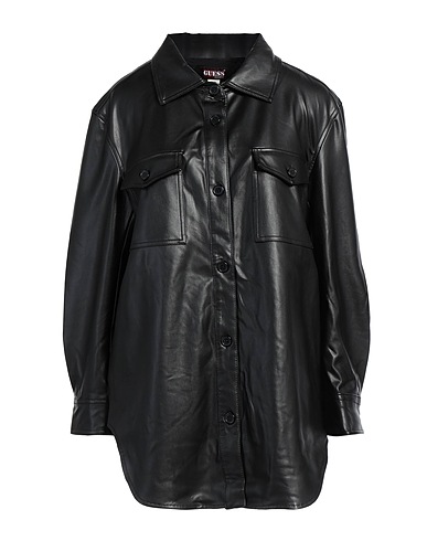 GUESS Solid color shirts & blouses ORIGINALS NERO 96% Rayon, 4% Elastane, Polyurethane coated