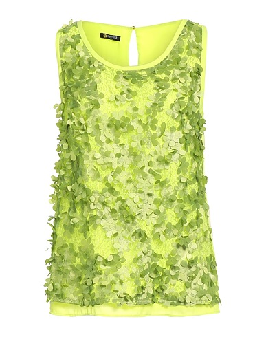 top, crepe, solid color with appliqués, floral appliqués, cutout, scoop