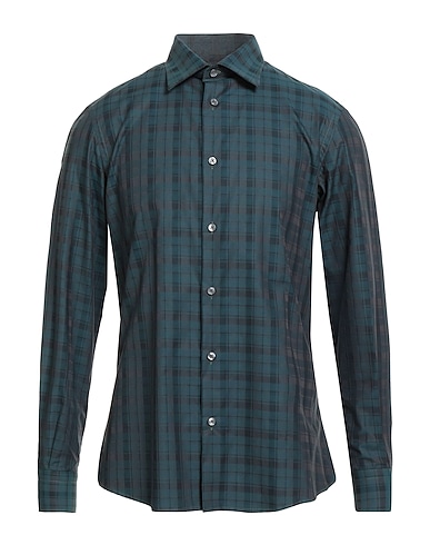 slim-fit shirt, twill, tartan pattern, no appliqués, classic collar, long sleeves, buttoned cuffs, button fastenings, machine wash or dry clean, do not bleach, do not tumble dry, this brand runs small