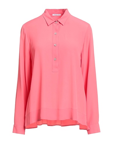 top, crepe, solid color, no appliqués, classic collar, long sleeves, buttoned cuffs, button fastenings, hand wash or dry clean, do not bleach, do not tumble dry