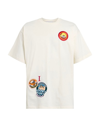t-shirt, jersey, solid color with appliqués, embroidered logo, patches, crewneck, short sleeves, machine wash or dry clean, do not bleach, do not tumble dry, this brand runs small