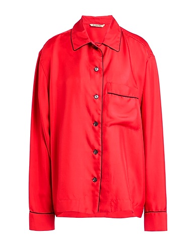 shirt, satin, solid color, piped trims, classic collar, long sleeves, buttoned cuffs, button fastenings, one chest pocket, dry clean, do not bleach, do not tumble dry
