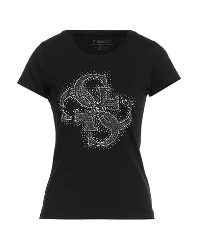 logo-print t-shirt, jersey, stretchy fabric, solid color with print, crystals, crewneck, short sleeves, hand wash, do not bleach, do not tumble dry