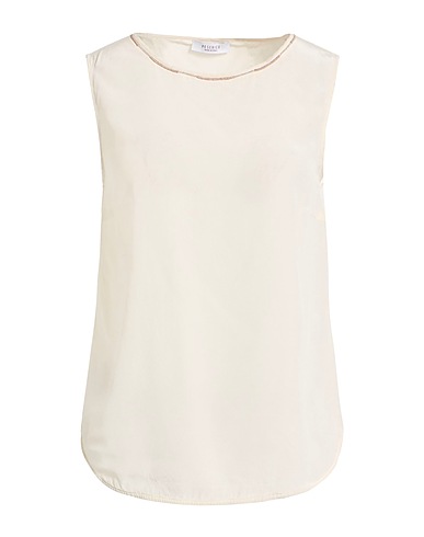 top, crepe, solid color with appliqués, embellished, crewneck, sleeveless, hand wash or dry clean, do not bleach, do not tumble dry