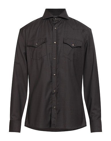 regular-fit shirt, cool wool, solid color, no appliqués, classic collar, long sleeves, snap-fastening cuffs, snap fastenings, two chest pockets, contains non-textile parts of animal origin, hand wash or dry clean, do not bleach, do not tumble dry