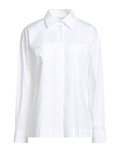 shirt, poplin, stretchy fabric, solid color, no appliqués, classic collar, long sleeves, buttoned cuffs, concealed button fastenings, two chest pockets, side slit hemline, dry clean, do not bleach, do not tumble dry, power dressing meets elegance in this chic office outfit that will inspire confidence every day