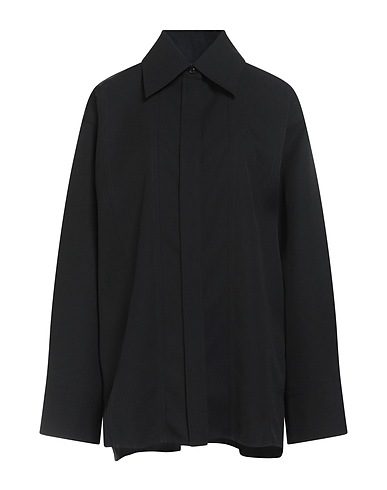 overshirt, cool wool, solid color, no appliqués, classic collar, long sleeves, buttoned cuffs, button fastenings, side slit hemline, contains non-textile parts of animal origin, specialist clean or dry clean, do not bleach, do not tumble dry