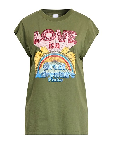 printed t-shirt, jersey, solid color with print, brand logo, metallic trim, crewneck, short sleeves, machine wash, do not bleach, do not tumble dry