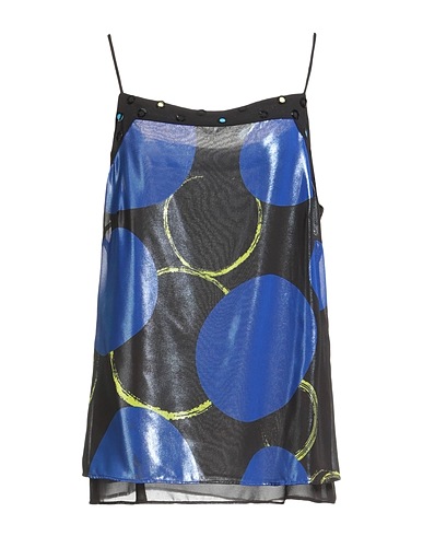 camisole, crepe, metallic, geometric-print, sequins, deep neckline, sleeveless, fully lined, machine wash or dry clean, do not bleach, do not tumble dry