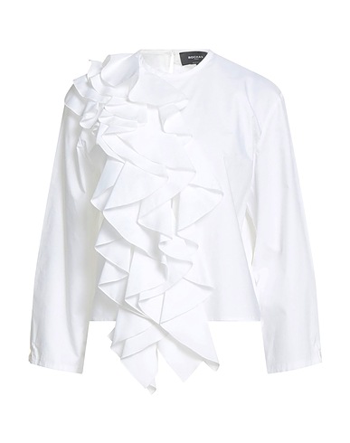 ruched top, poplin, solid color, ruffles, crewneck, long sleeves, 1 button, machine wash or dry clean, do not bleach, do not tumble dry, this brand runs large