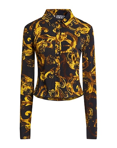 shirt, synthetic jersey, stretchy fabric, signature print, brand logo, classic collar, long sleeves, buttoned cuffs, button fastenings, machine wash or dry clean, do not bleach, do not tumble dry, this brand runs small