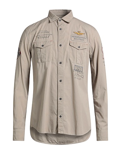 safari shirt, woven, solid color with appliqués, embroidered logo, print, classic collar, long sleeves, buttoned cuffs, button fastenings, two chest pockets, machine wash, do not bleach, do not tumble dry