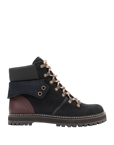 hiking boots, leather, two-tone, brand logo, leather lining, lace-up, round toe, flat, rubber sole, contains non-textile parts of animal origin
