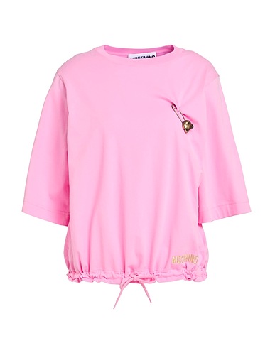 t-shirt, jersey, solid color with appliqués, embroidered logo, brooch, crewneck, short sleeves, drawstring hem, hand wash, do not bleach, do not tumble dry