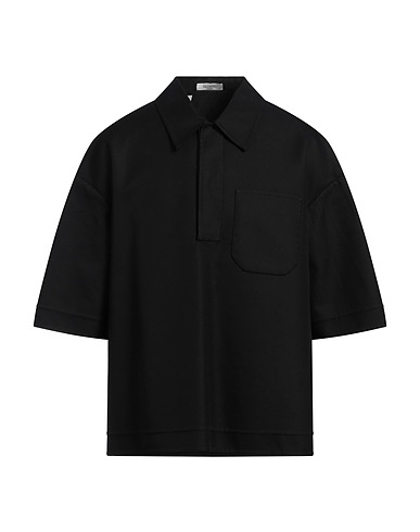 gabardine, no appliqués, solid color, classic neckline, short sleeves, button closing, single chest pocket, contains non-textile parts of animal origin