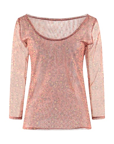 top, tulle, floral-print, no appliqués, scoop neckline, long sleeves, stretch