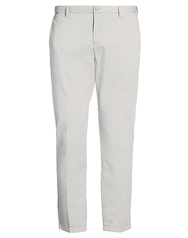 chino pants, chambray, solid color with appliqués, leather trims, brand logo, low waisted, belt loops, tapered leg, regular fit, folded hem, welt pockets, slit pockets, machine wash or dry clean, do not bleach, do not tumble dry, contains non-textile parts of animal origin, cropped