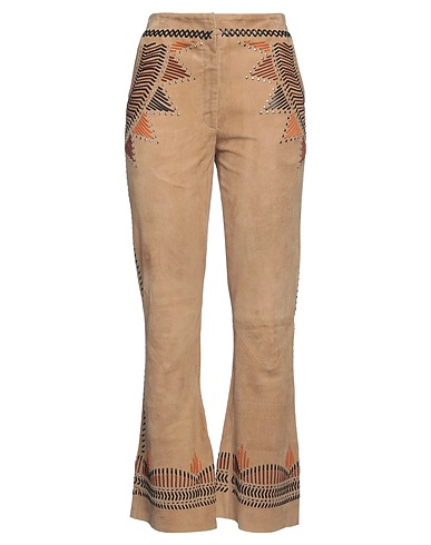suede, studs, embellished, solid color with appliqués, high waisted, flared cut, slim fit, hook fastenings, zipper fastening, multipockets, do not dry clean, do not tumble dry, do not bleach, contains non-textile parts of animal origin, chinos