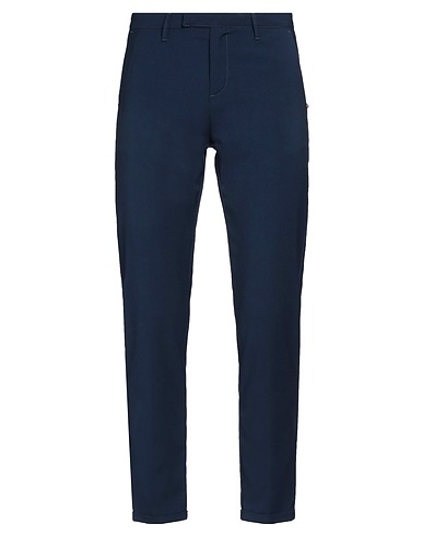 plain weave, no appliqués, solid color, mid rise, tapered leg, regular fit, 2 buttons, zipper closure, cuffed hems, multipockets, stretch, tailored