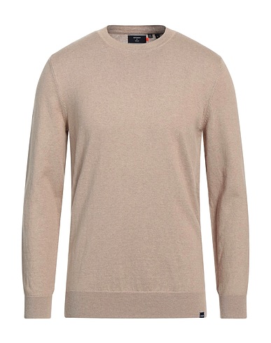knitted, mélange, lightweight knit, brand logo, solid color, round collar, long sleeves, no pockets