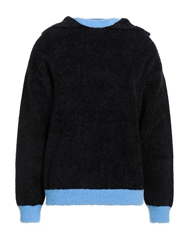 FUZZY CONTRAST COLOR KNIT HOODIE