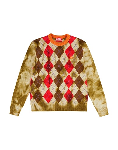 knitted, lightweight knit, embroidered logo, geometric-print, tie-dyed, crewneck, long sleeves, without pockets, hand wash, do not bleach, do not tumble dry