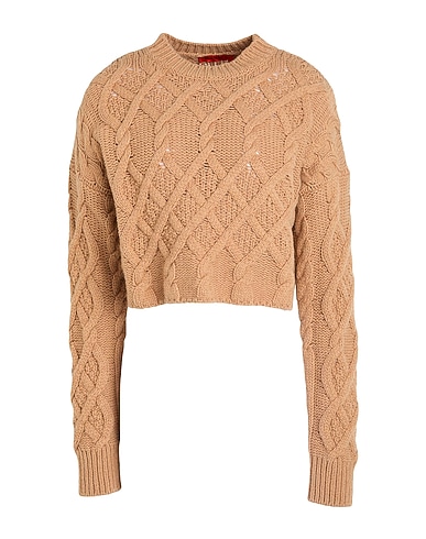 cable-knit, medium-weight knit, solid color, cropped, crewneck, long sleeves, hand wash or dry clean, do not bleach, do not tumble dry