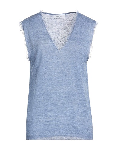 top, knitted, lightweight knit, mélange, no appliqués, v-neck, sleeveless, hand wash or dry clean, do not bleach, do not tumble dry