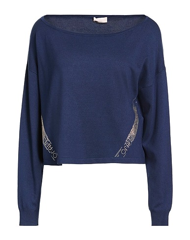 knitted, lightweight knit, solid color with appliqués, embellished, brand logo, scoop