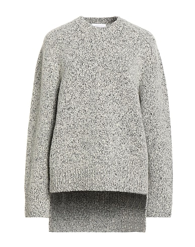 bouclé, medium-weight knit, brand logo, mélange, crewneck, long sleeves, hand wash or dry clean, do not bleach, do not tumble dry