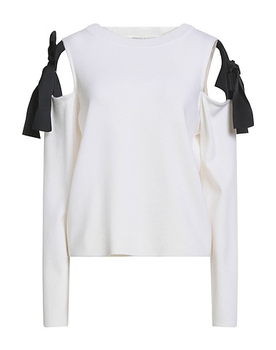 knitted, lightweight knit, solid color with appliqués, bow-detailed, satin trims, cutout, crewneck, long sleeves, stretch, dry clean, do not bleach, do not tumble dry