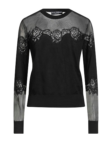 knitted, lightweight knit, lace trims, solid color, crewneck, long sleeves, dry clean, do not bleach, do not tumble dry