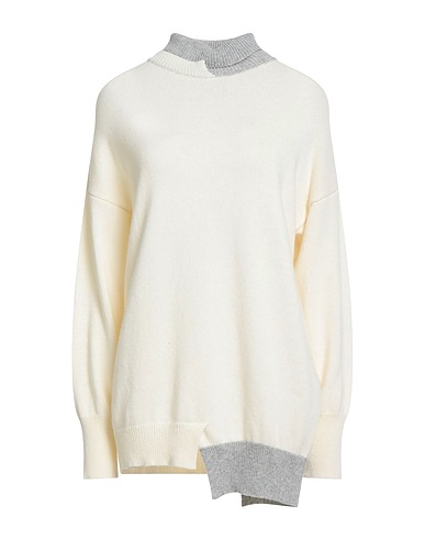 knitted, lightweight knit, no appliqués, two-tone, turtleneck, long sleeves, side slit hemline, hand wash or dry clean, do not bleach, do not tumble dry