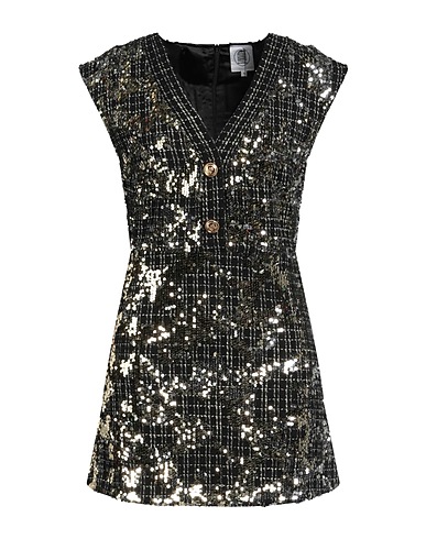 tweed, sequins, tartan pattern, v-neck, sleeveless, fully lined, zipper closure, no pockets, trapeze style