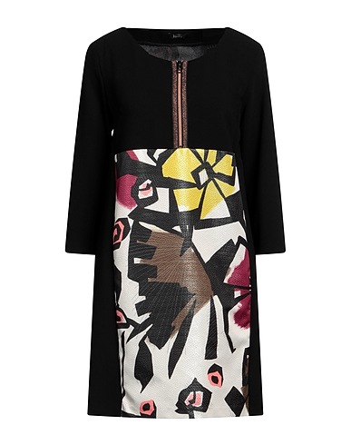crepe, lamé, no appliqués, multicolor pattern, crew neck, 3/4 length sleeves, fully lined, zipper closure, no pockets, trapeze style