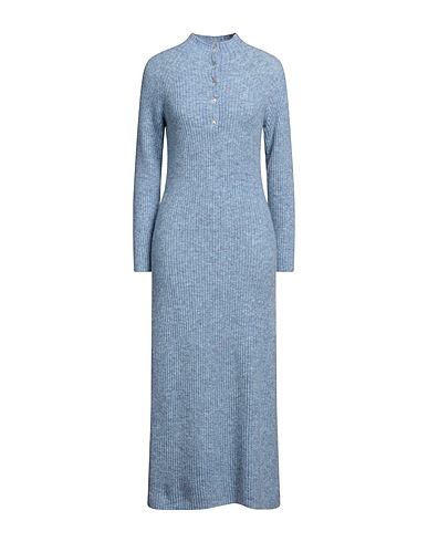 flared dress, knitted, ribbed, mélange, mid-weight knit, stretchy fabric, solid color, no appliqués, turtleneck, long sleeves, unlined, snap fastenings, without pockets